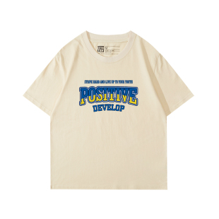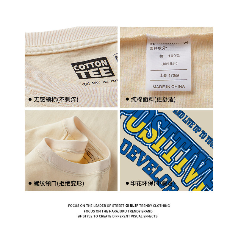 t恤女夏季 小众街头ins潮奶杏色短袖 古着感上衣 复古宽松大版 美式