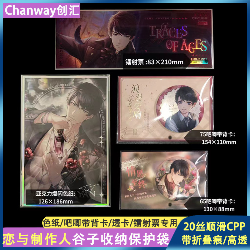 创汇高透自粘袋恋与制作人吧唧自封袋背卡收纳袋色纸镭射票保护袋