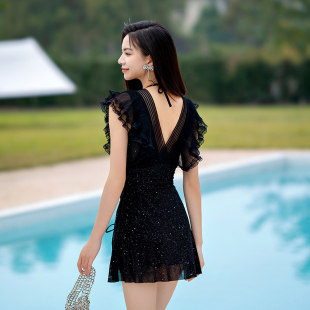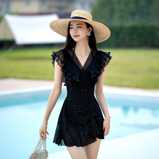 仙气韩式 泡温泉泳装 修身 夏季 显瘦抽褶钢托2024新款 泳衣女连体裙式