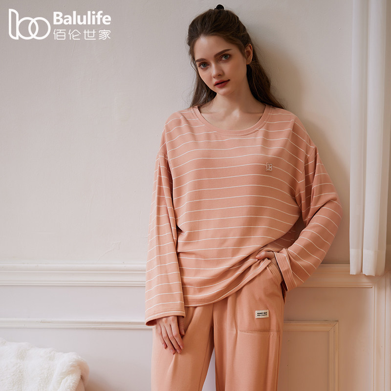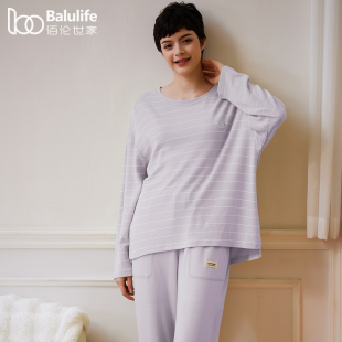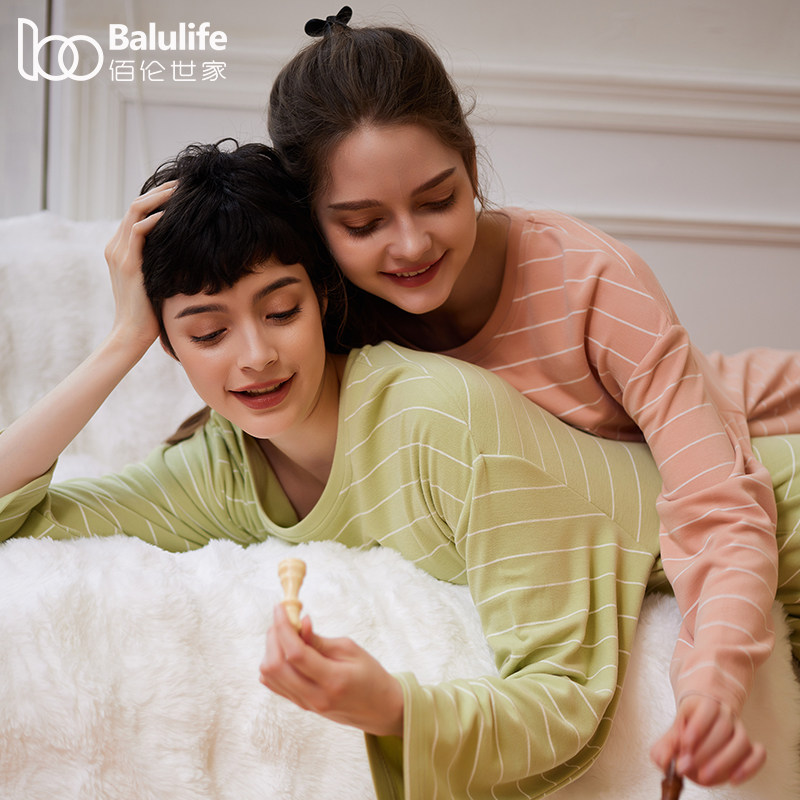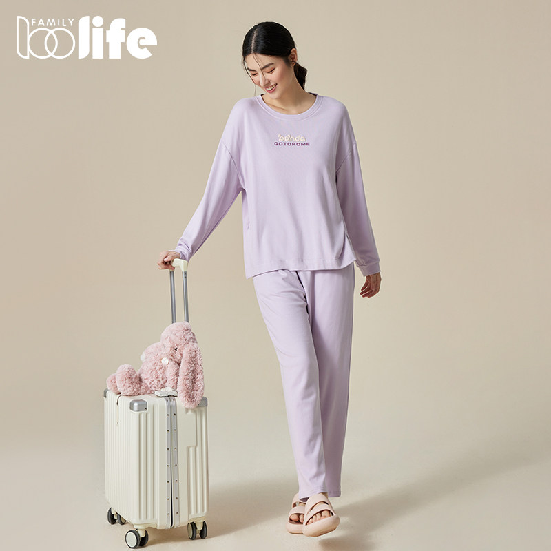 圆领套头舒绒棉优可丝棉质抑菌防螨家居服秋冬季 睡衣女春秋款 长袖