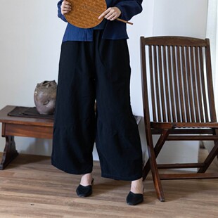 大拙复古风慵懒感松紧腰棉麻显瘦百搭休闲通勤休闲裤 210513