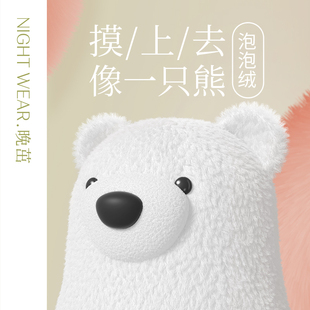 晚茁秋冬珊瑚绒睡袍女浴袍晨袍家居服女连帽可爱加厚睡衣女可外穿