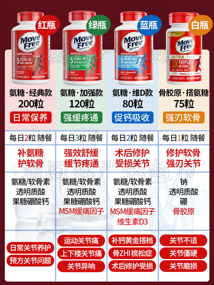 现货美国原装 进口MoveFree益节氨糖软骨素维骨力补钙中老年关节灵