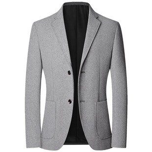 ELI 真丝羊毛混纺平驳领釉面牛角扣休闲西服外套男春秋 杜松