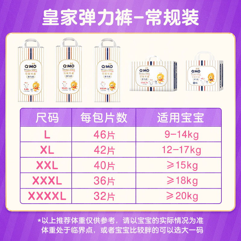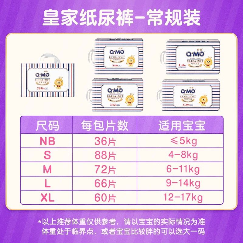 尿不湿S 男女婴儿超薄透气弹力裤 XXXL 纸尿裤 奇莫皇家至柔拉拉裤