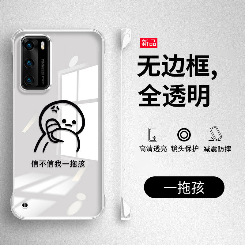 适用华为P40手机壳P40pro新款 无边框硬壳ELS一AN00保护套P30全包防摔5G超薄外壳P20透明pr0男ANA女ELS P40pro