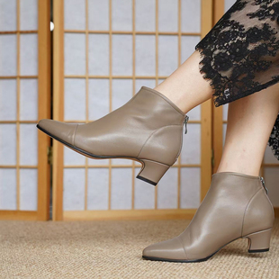 靴F3051DD5 通勤方头复古短靴粗跟女时装 百思图2025冬季 商场新款