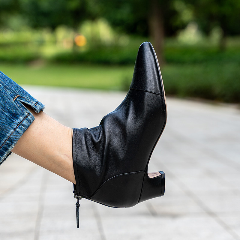 靴超软羊皮切尔西靴B7E1DDD5 瘦瘦短靴加绒时装 百丽女靴冬季 新款