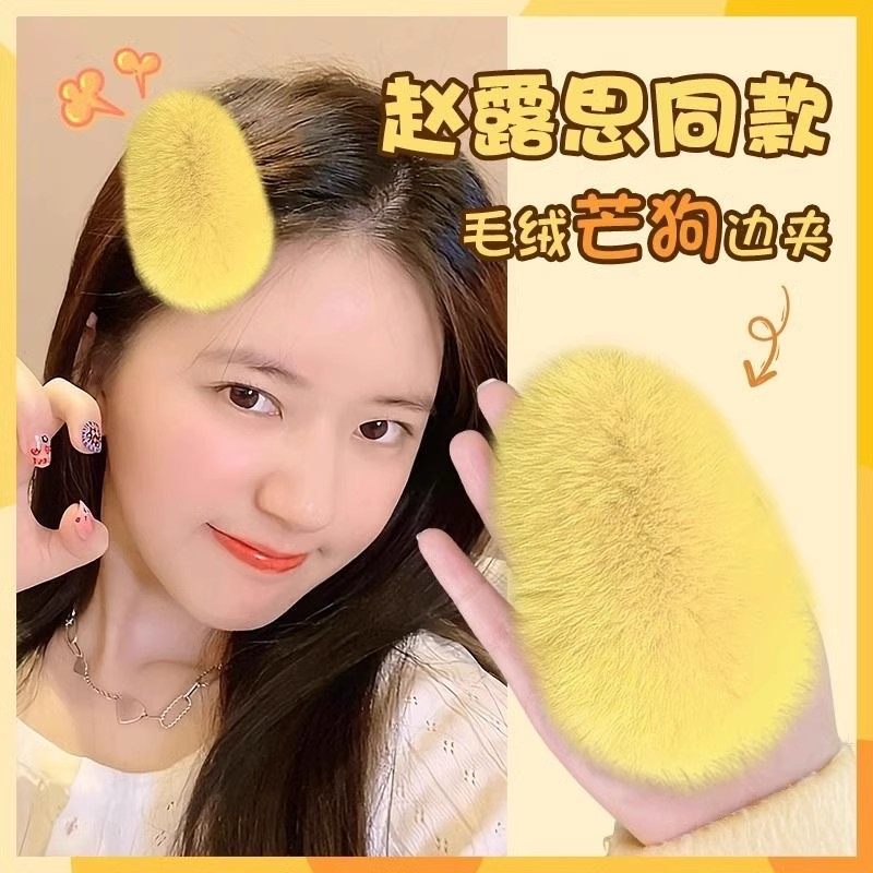 芒狗碎发bb夹发卡毛毛芒果核发夹女侧边刘海夹子獭兔毛绒发夹头饰