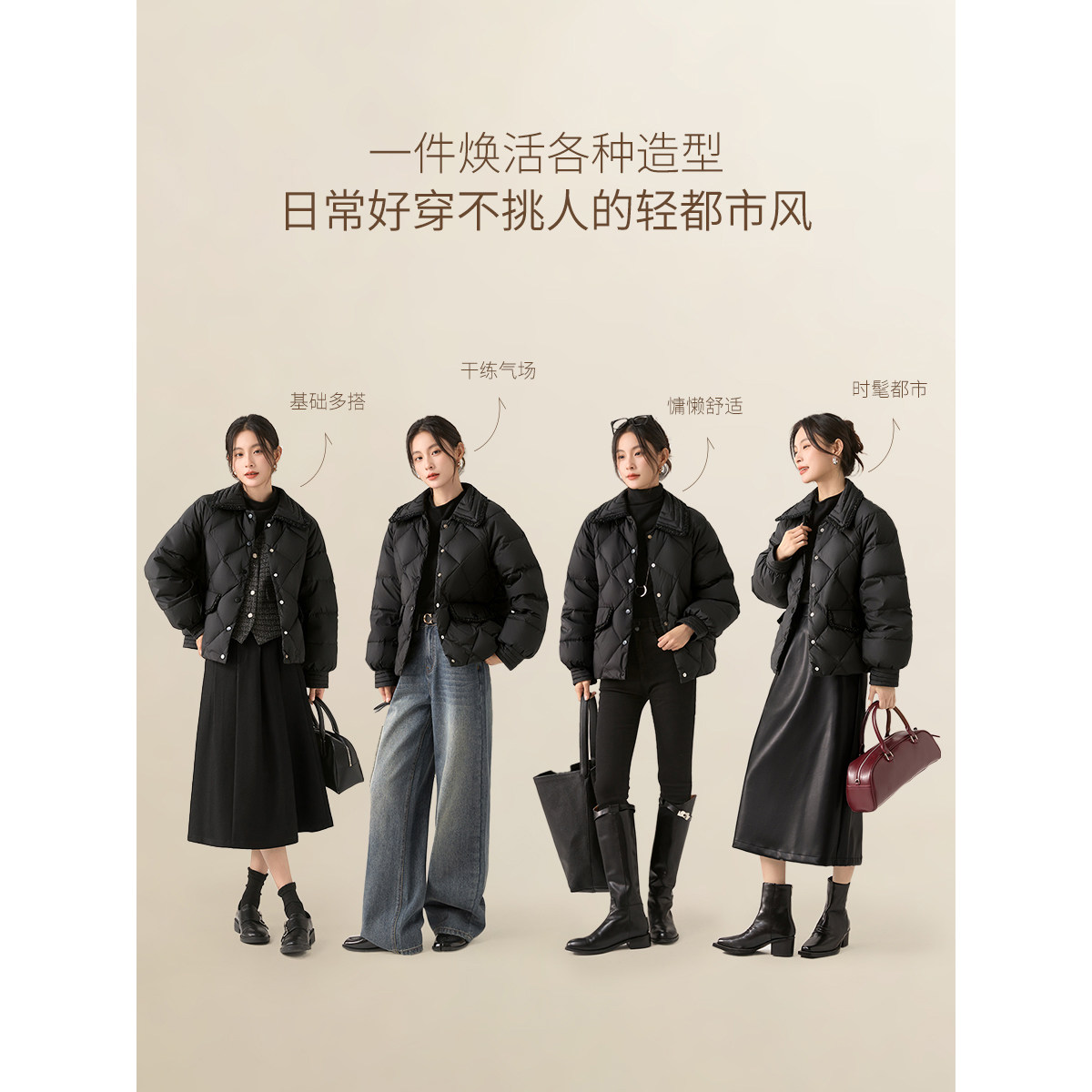 雪中飞2025秋冬新款 简约百搭青春休闲 女士菱格圆领羽绒服内恤时尚