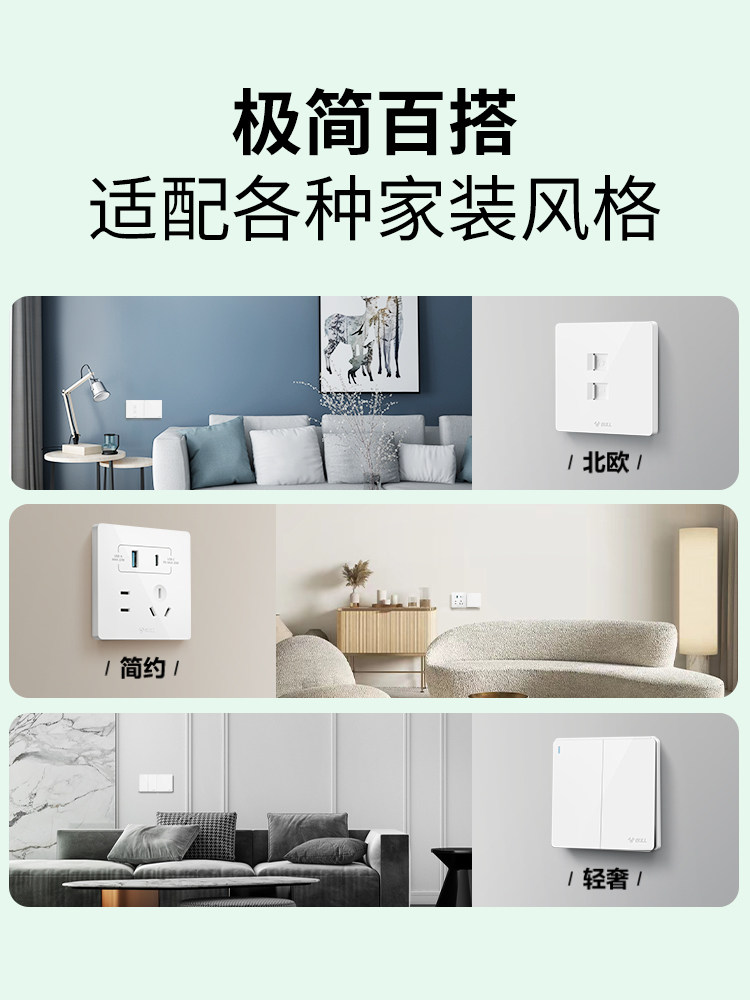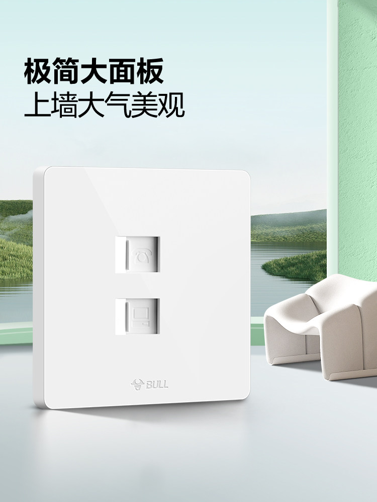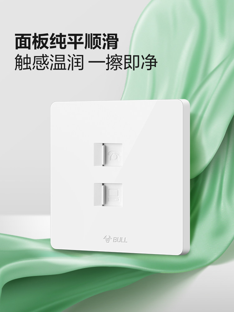 公牛六类网络信息电脑带加电话网线电话线二合一双口86型面板一体