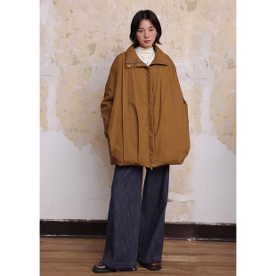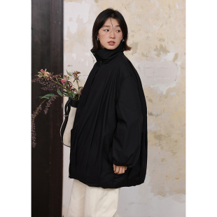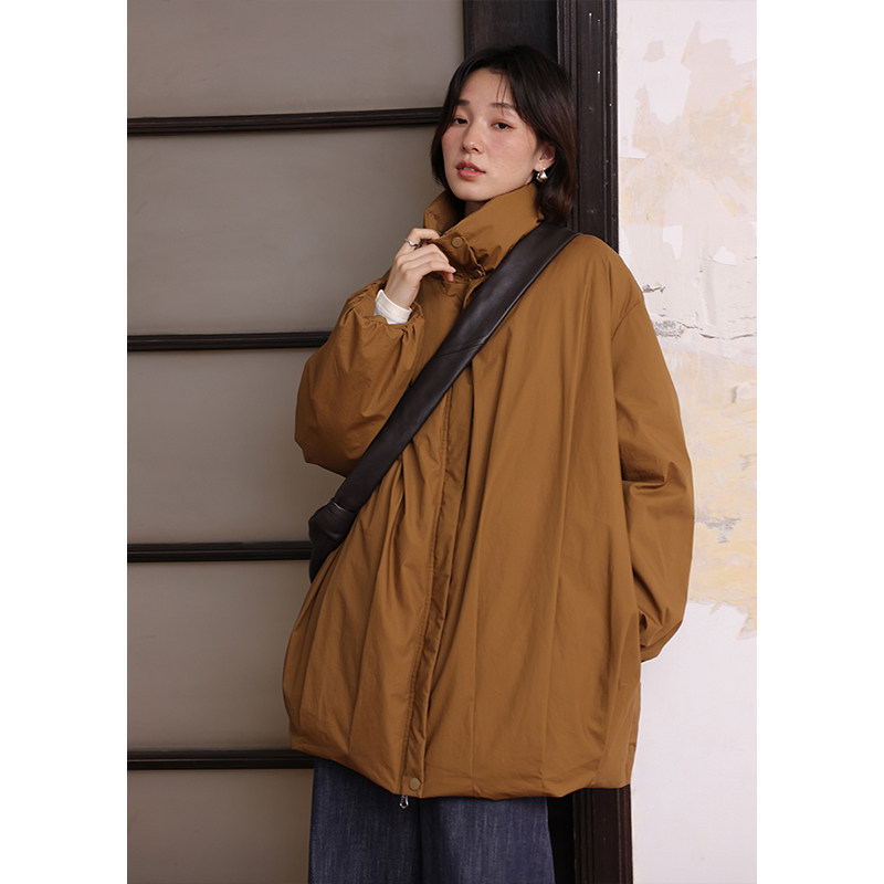 BLUEerror 纸感加厚保暖立领白色轻薄羽绒服女鸭绒宽松外套冬季