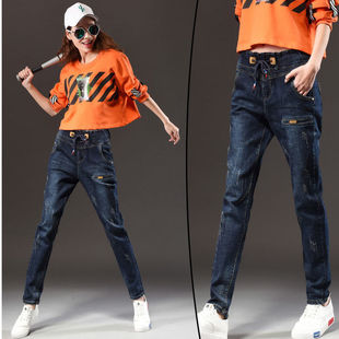 刺绣牛仔裤 你 显瘦显高遮肉直筒修身 小香私服裤 女新 懒懒llan