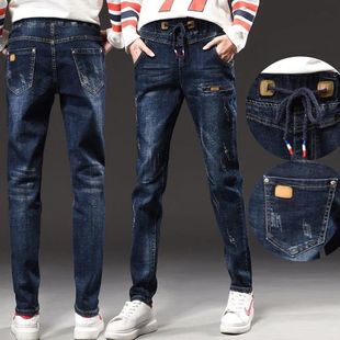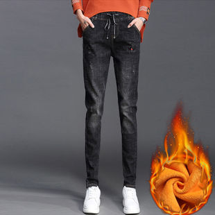 加厚保暖弹力烟管法棍裤 小个子bi入巨显瘦水貂绒直筒牛仔裤 女冬季