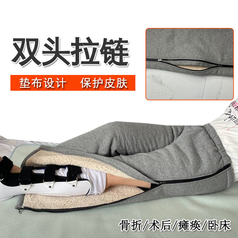 保暖男女 棉裤 秋冬加厚绒腿骨折卧床住院瘫痪易穿脱裤 子全开护理裤