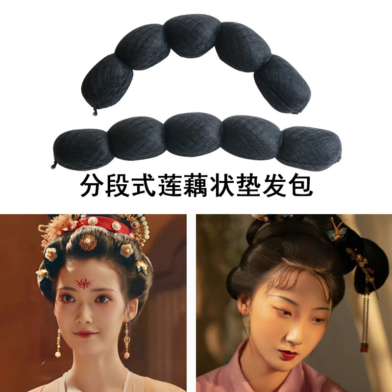 古装 造型假发全发丝垫发包唐风宋制鬓角莲藕状分段牛角包额前抱面