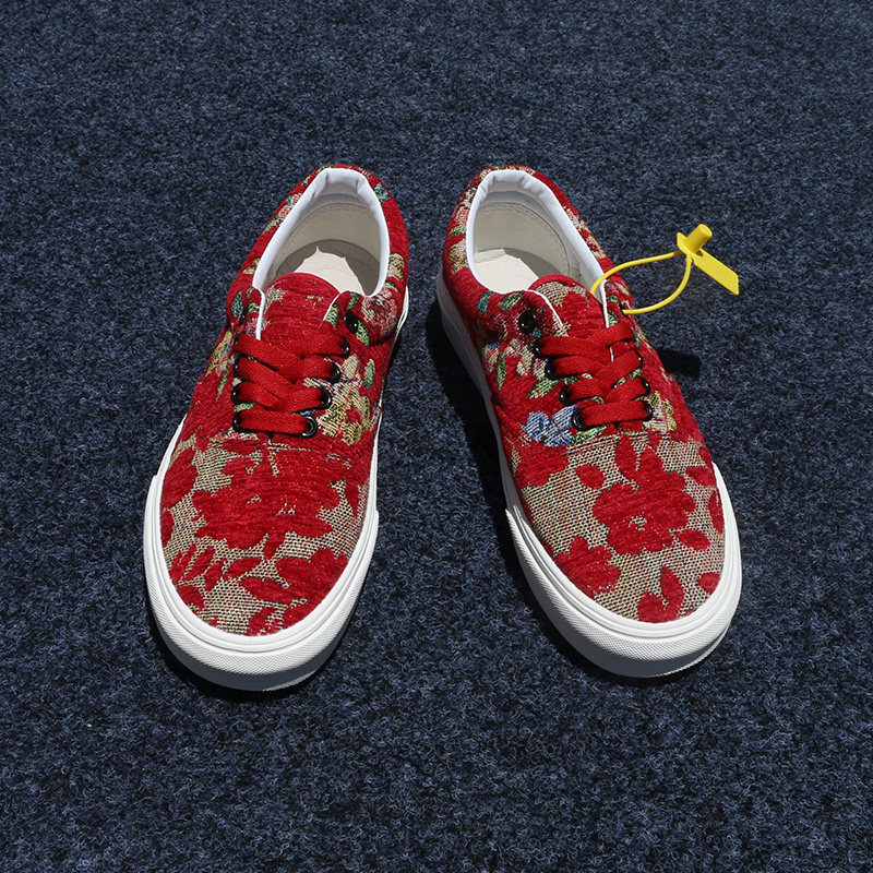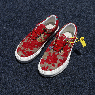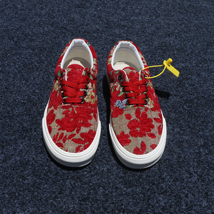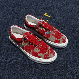 鞋 子男时尚 红色绣花帆布鞋 颜值爆表 女 女鞋 毫无抵抗 男鞋 板鞋