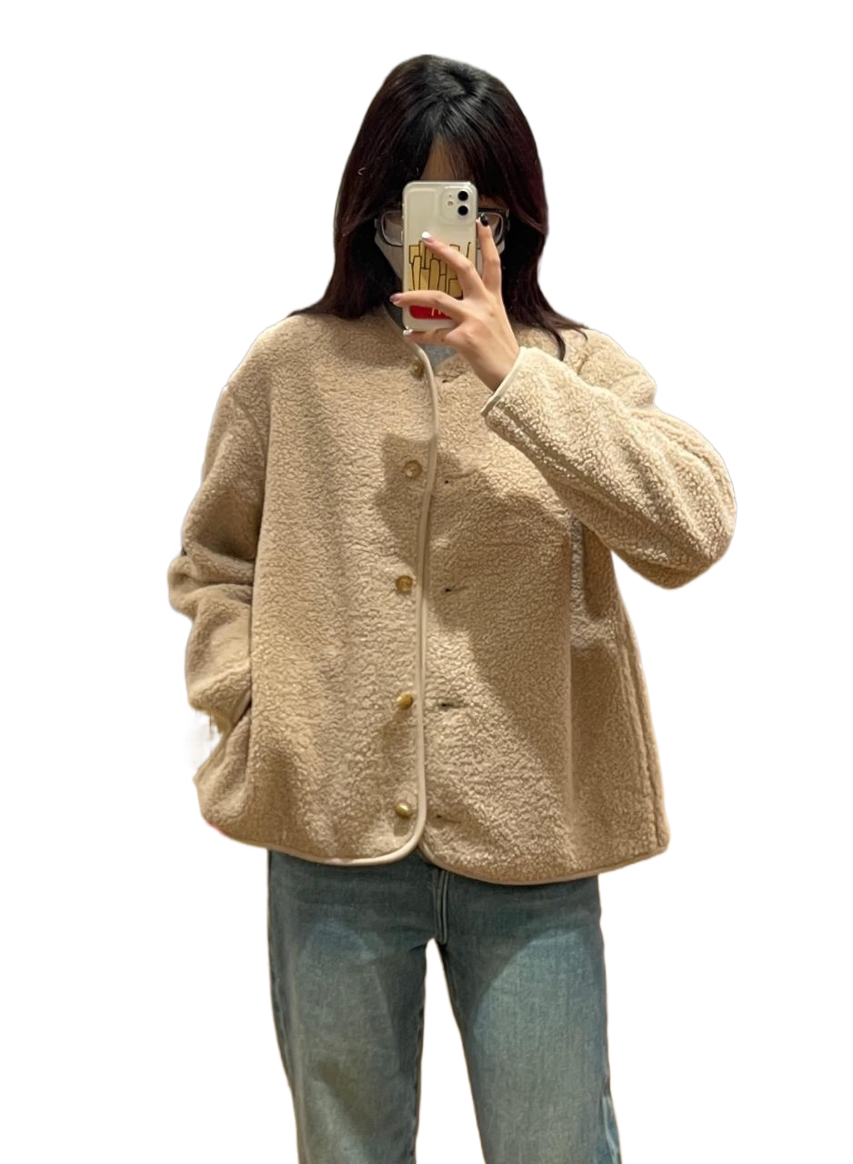抓绒外套女461660 长袖 软糯糯 棵米ai蕉家仿羊羔绒摇粒绒圆领开衫