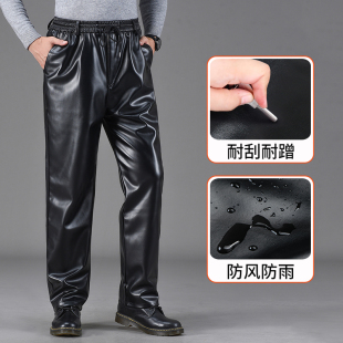 皮棉裤 皮裤 男加绒加厚宽松保暖挡风防水防油工作服中老年劳保工装