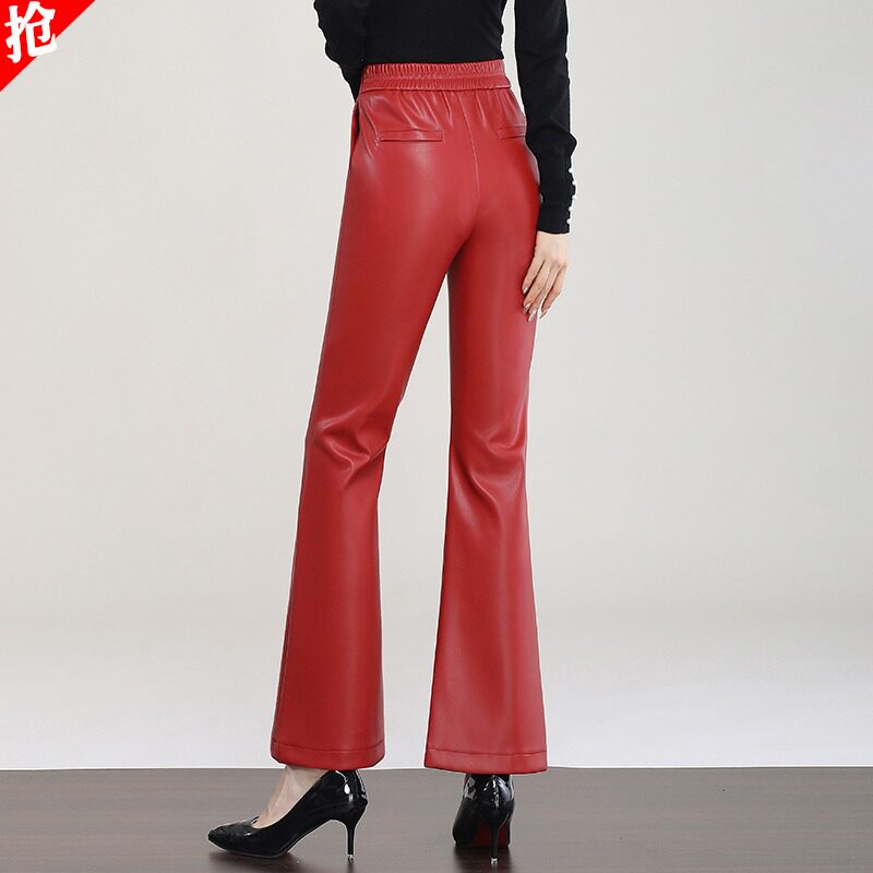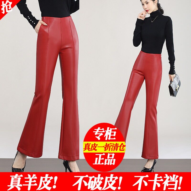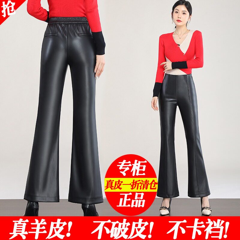 外穿高腰薄绒绵羊皮长裤 微喇叭修身 子 女秋冬2025新款 海宁真皮皮裤
