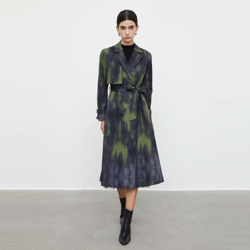 Aurocean 学院羊毛呢大衣炭灰色双面呢廓形风衣外套 长度刚刚好