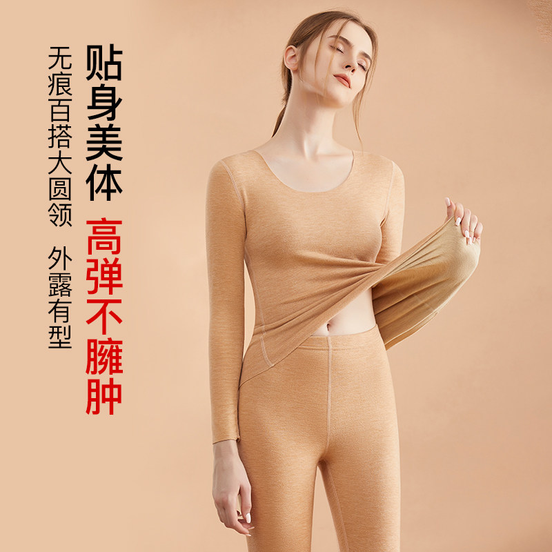 冬季 保暖内衣女士加绒德发热内搭上衣加厚含羊毛蚕丝秋衣秋裤 套装