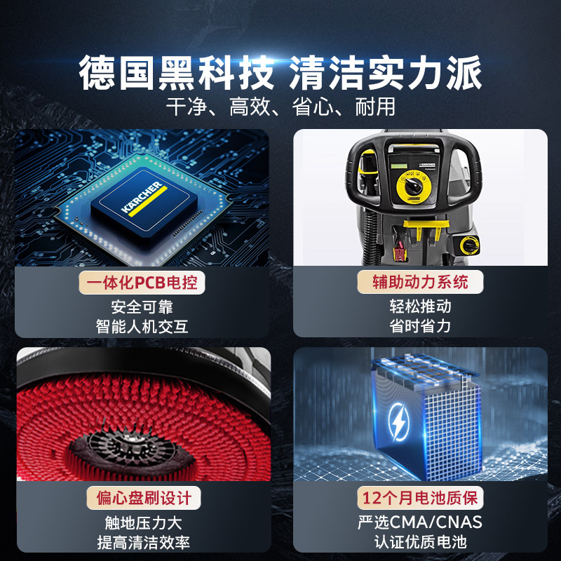 Karcher德国卡赫洗地机工厂扫地吸拖一体机商用拖地洗地车BD50