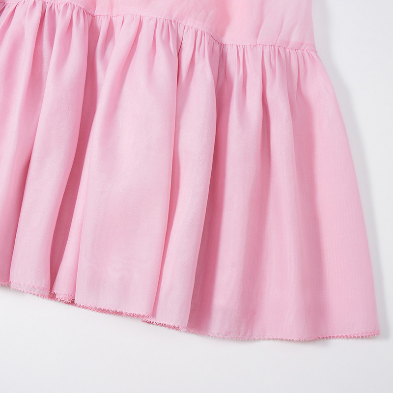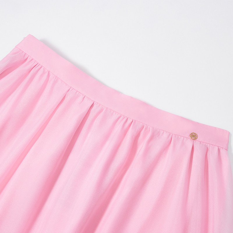 HUI卉苏梅 结绿色双色SPH柯根纱平纹透明肌理荷叶边裙摆压褶半裙
