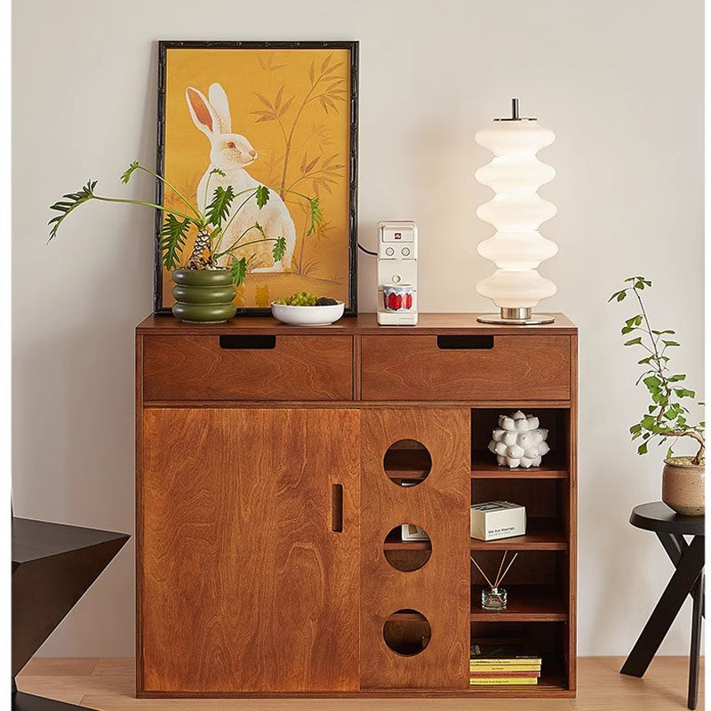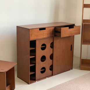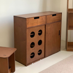 中古风实木光阴柜储物柜法式 复古实木斗柜小户型中古实木斗柜