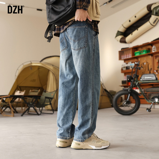 水洗显瘦硬汉直筒丹宁长裤 复古黑色中腰牛仔裤 子男秋 美式 马登工装