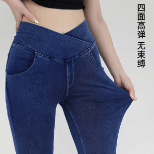 弹力春季 女2026年新款 薄款 网红爆款 仿牛仔裤 健身裤 高腰紧身瑜伽裤
