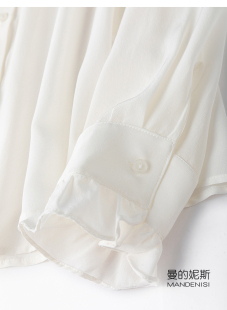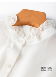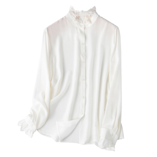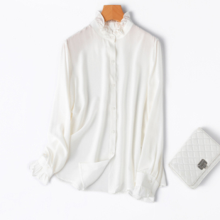 桑蚕丝OL风春季 衬衫 新 木耳领立领长袖 好质感04真丝双绉白色法式