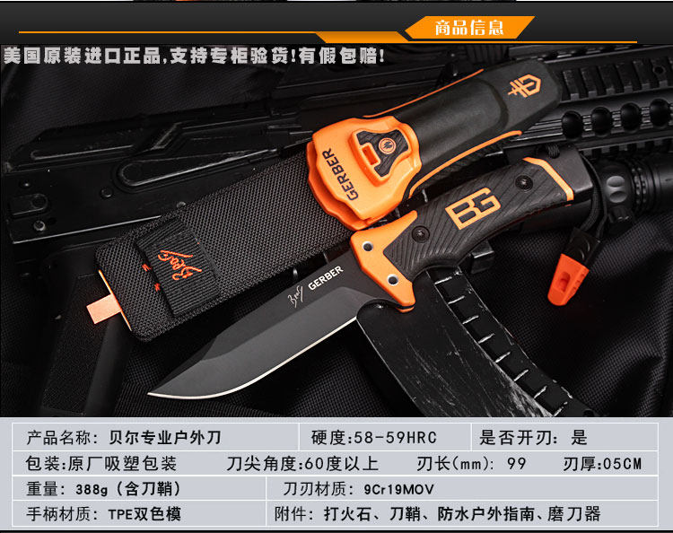 正品 美国贝尔刀荒野求生随身刀具战术野外小刀户外防身直刀BG开刃