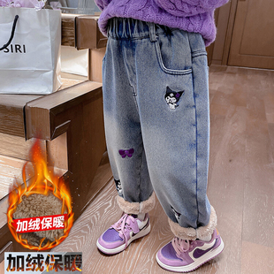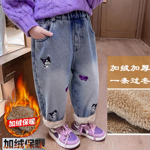 冬季 加厚裤 儿童棉裤 女宝宝冬装 子 一条过冬新款 女童加绒加厚牛仔裤