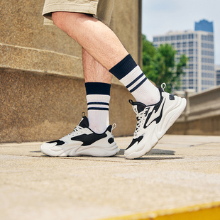 休闲鞋 桀骜皮面秋冬款 青少年鞋 子老爹鞋 鸿星尔克男鞋 跑步鞋 运动鞋
