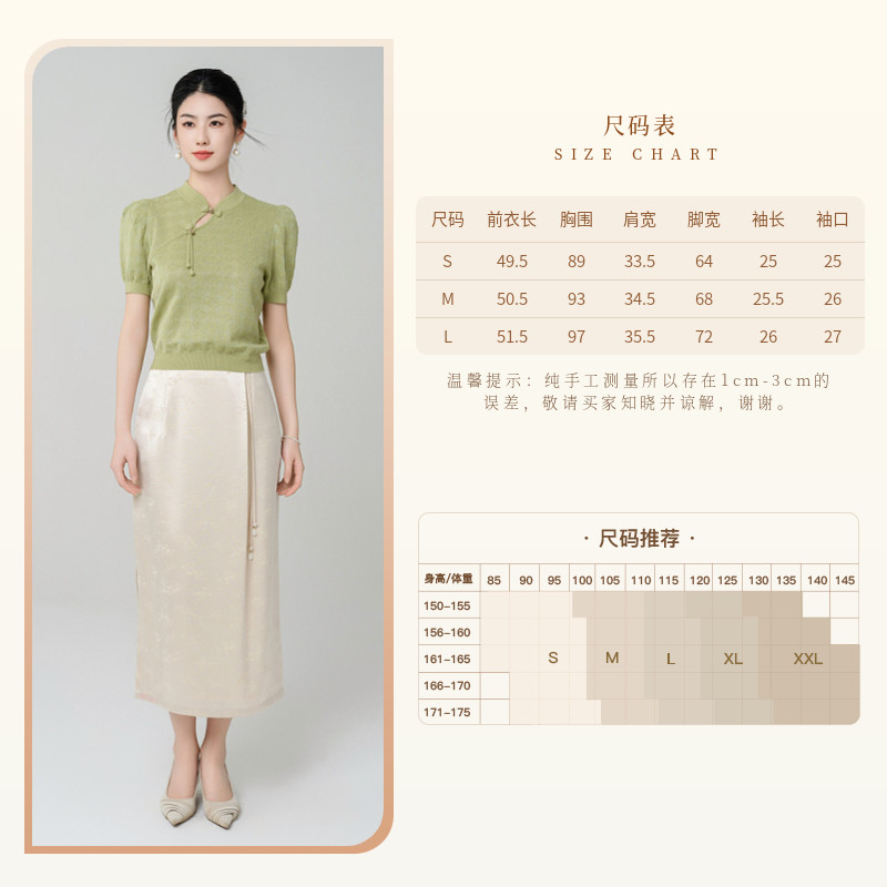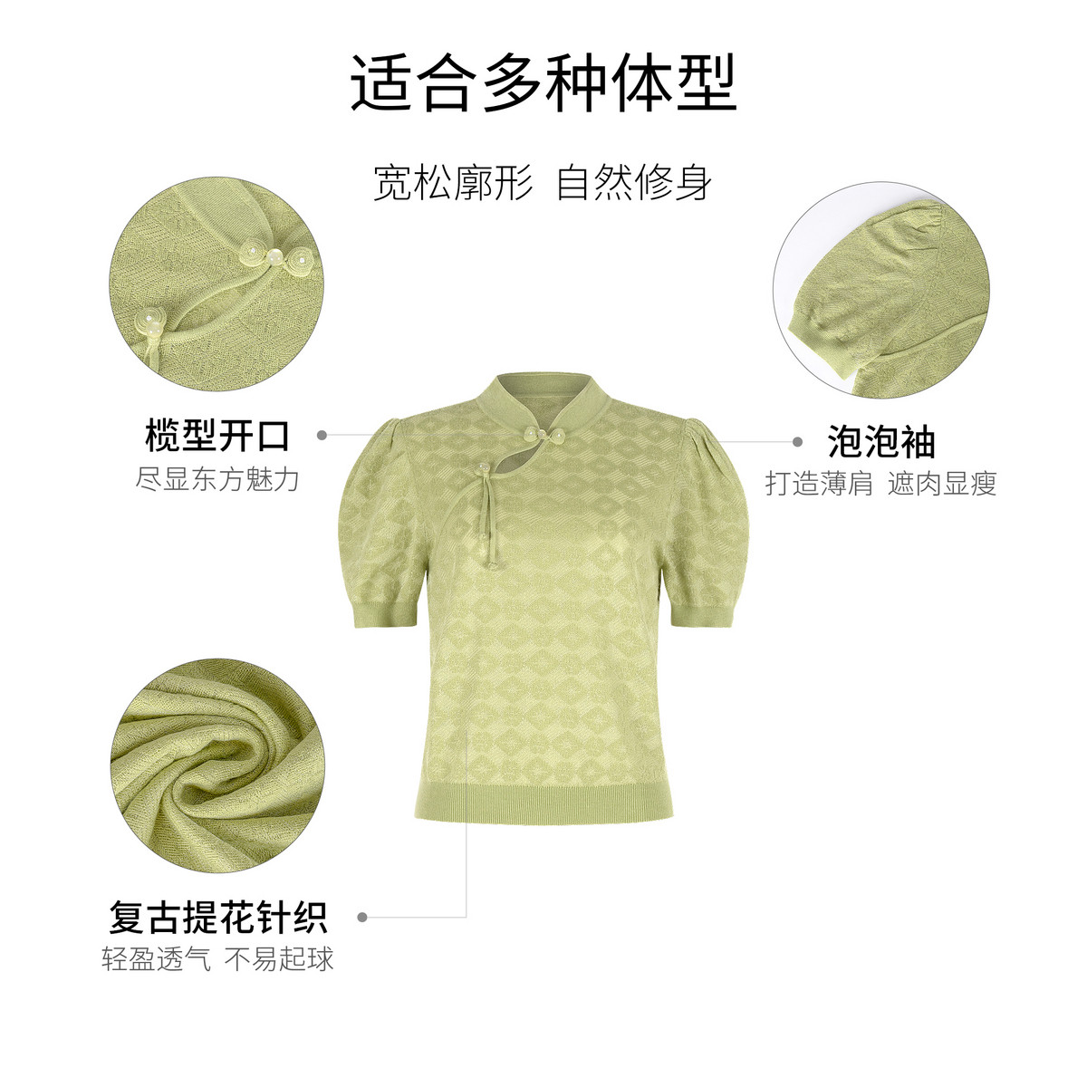 立领提花泡泡袖 中式 修身 短袖 40042MY09190 固执夏季 针织衫 新款
