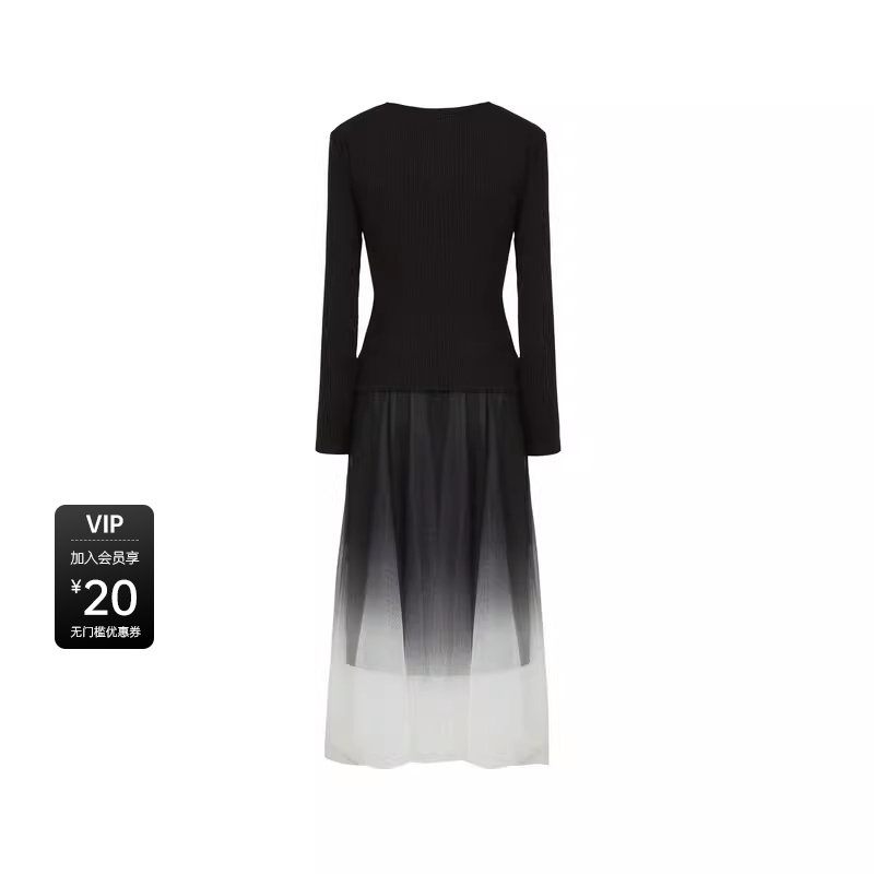 S241Z1410 圆领交叉收腰网纱针织吊带裙套装 sdeer圣迪奥春装 女装
