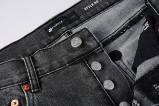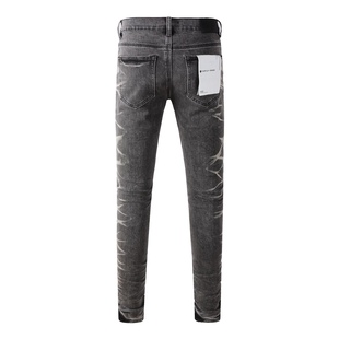 小脚裤 美式 青年弹力修身 复古水洗纹烟灰色牛仔裤 男 潮牌PURPLE新款