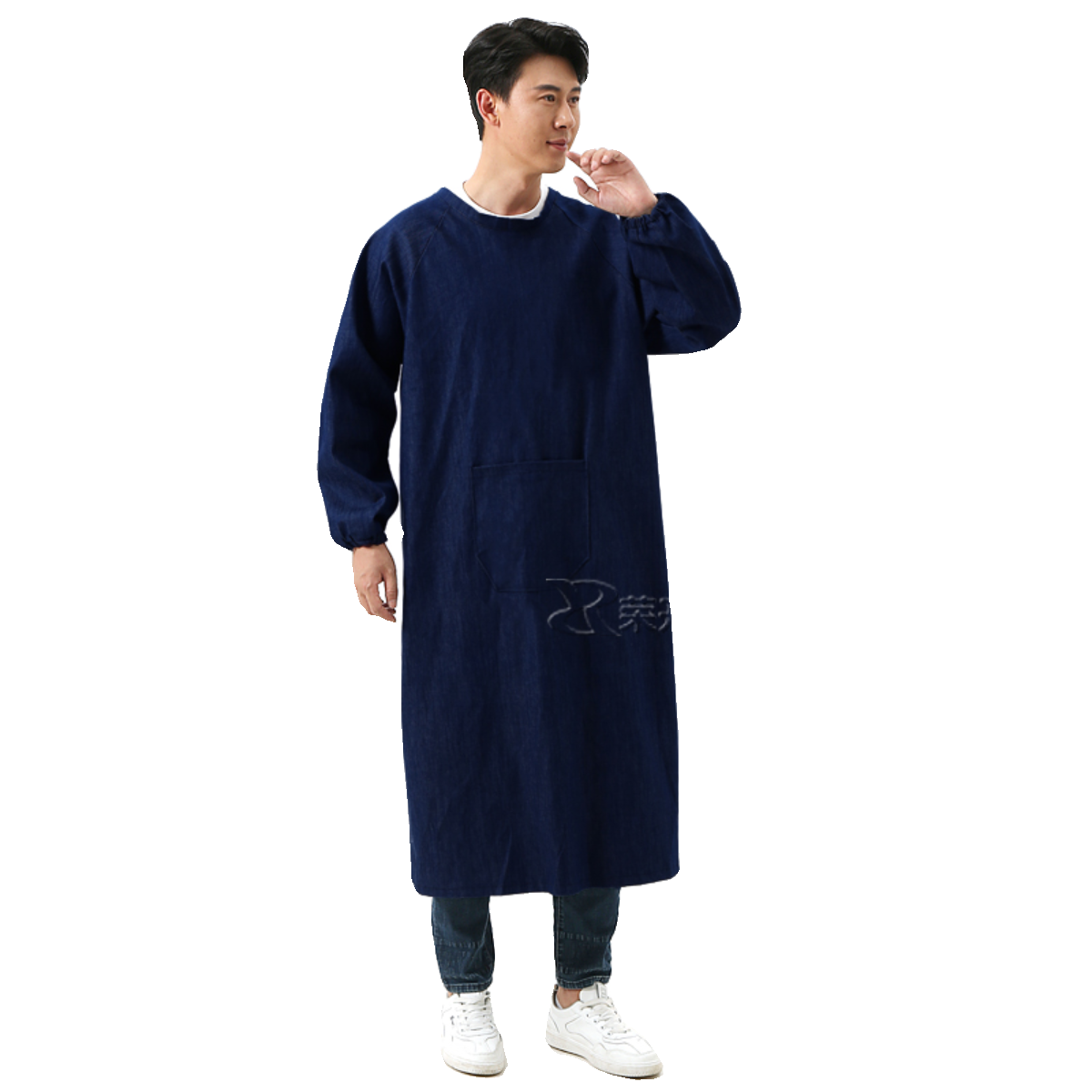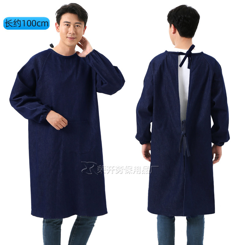 加厚牛仔反穿倒褂加大耐脏防污耐磨长袖 围裙罩衣劳保工作服反穿衣
