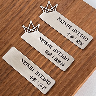 银色工牌胸牌定制工作牌logo印字员工姓名牌磁吸别针名牌订制高档