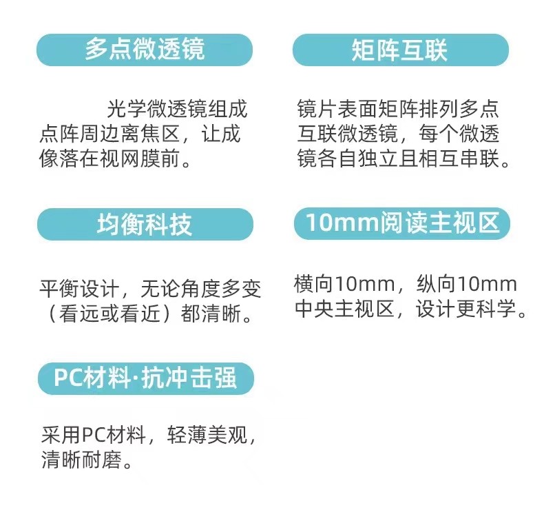 青少年正品 1.591PC非球面近视防蓝光多点离焦镜片送品牌镜框2片装