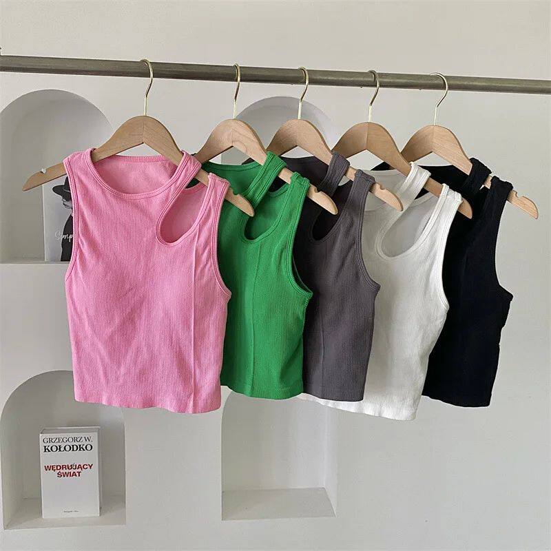 neck round strap镂空不对称圆领套头吊带女 asymmetrical Hollow