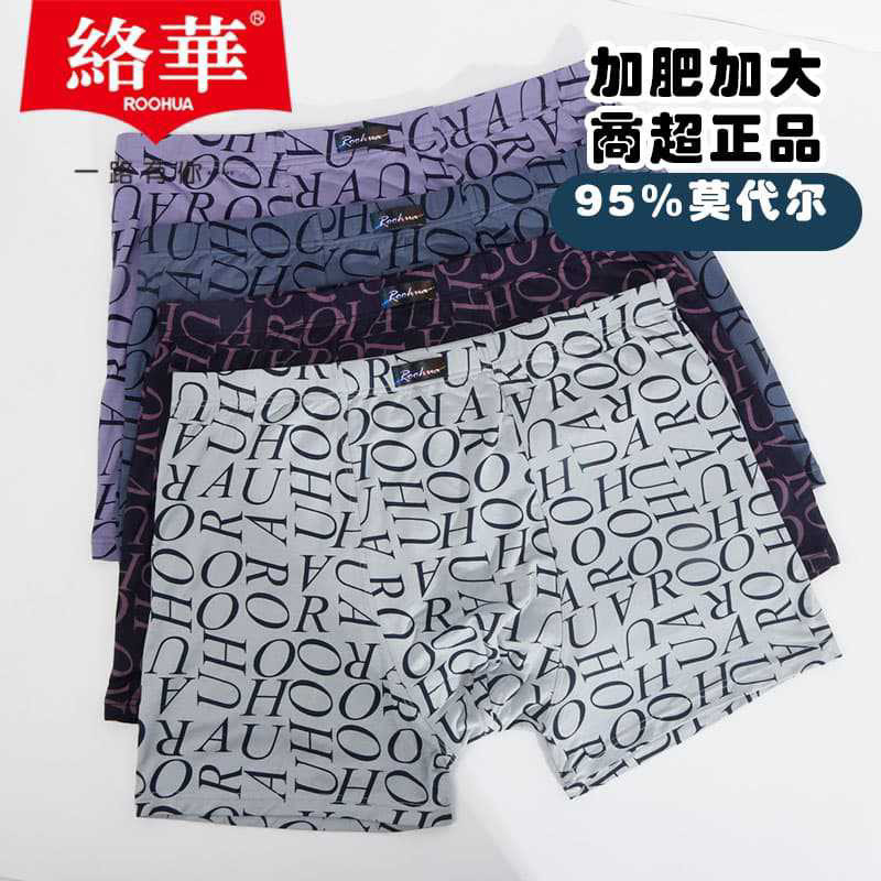 7625 男士 络华盒装 莫代尔印花商务透气U凸加大加肥佬中腰平角内裤