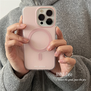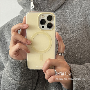 ANNACASE韩国ins少女奶油粉蓝黄色磨砂磁吸手机壳适用于iPhone17pro新款 16promax苹果15全包14防摔保护套13软