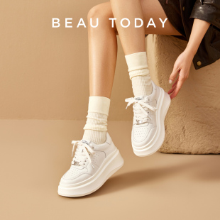 白色板鞋 春季 增高休闲鞋 轻便运动鞋 BeauToday厚底小白鞋 单鞋 女款