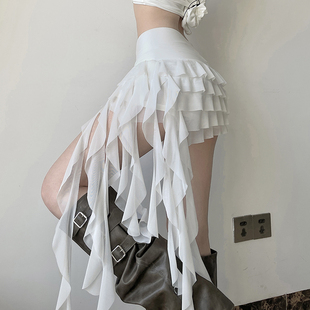 SEEYOULATER 空灵纯欲层叠荷叶边低腰飘带短裙不规则时髦半身裙女