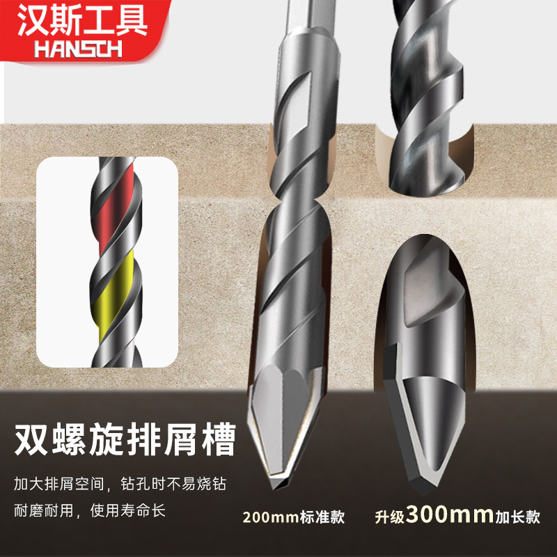 汉斯偏心钻头加长款 300mm混凝土水泥玻璃陶瓷手电钻专用瓷砖打孔