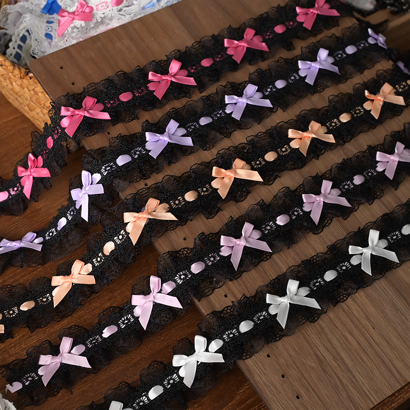 精工洛丽塔高档蝴蝶结蕾丝花边辅料扎痛包diy材料穿丝带褶皱装 饰
