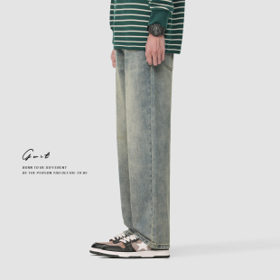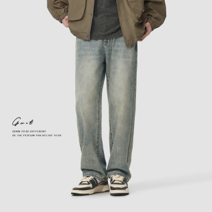 浅色牛仔裤 潮牌霜花石磨水洗cleanfit春秋阔腿长裤 男 美式 GWIT
