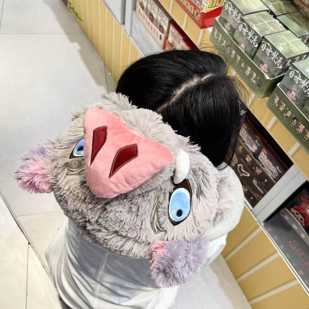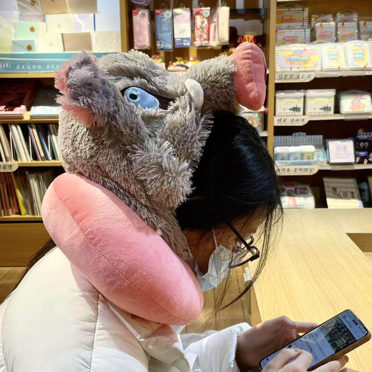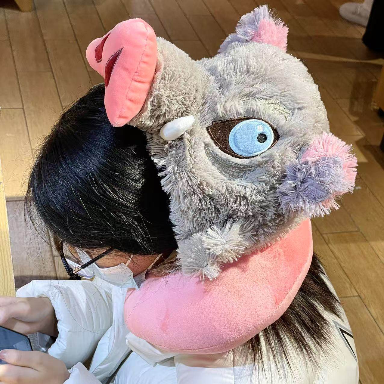 可爱卡通毛绒鬼灭之刃嘴平伊之助猪猪头帽子U型枕颈枕 包邮